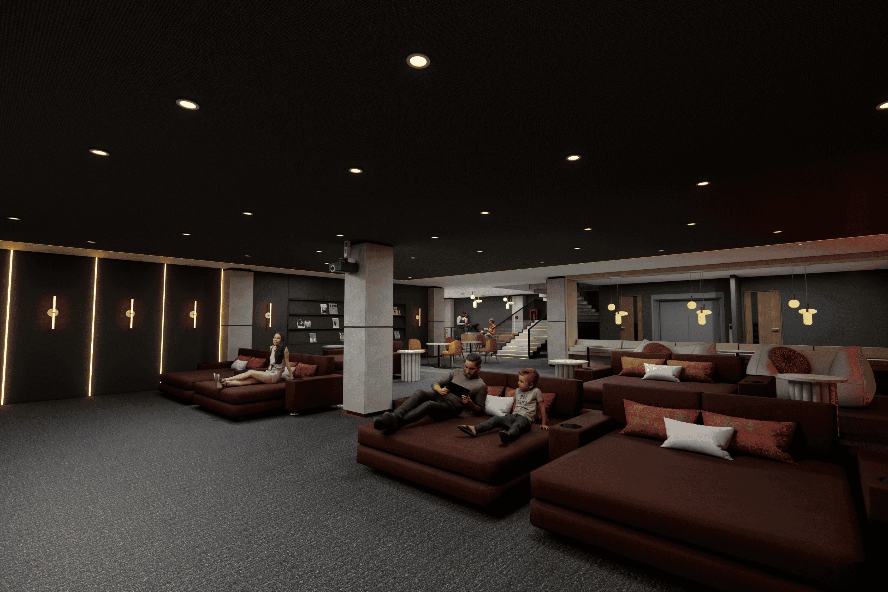 Entre sus espacios mas emblemáticos se encuentra un Cine dentro de las amenidades del proyecto, rescatando así la función por la que fue creado dicho edificio en los años de 1979.