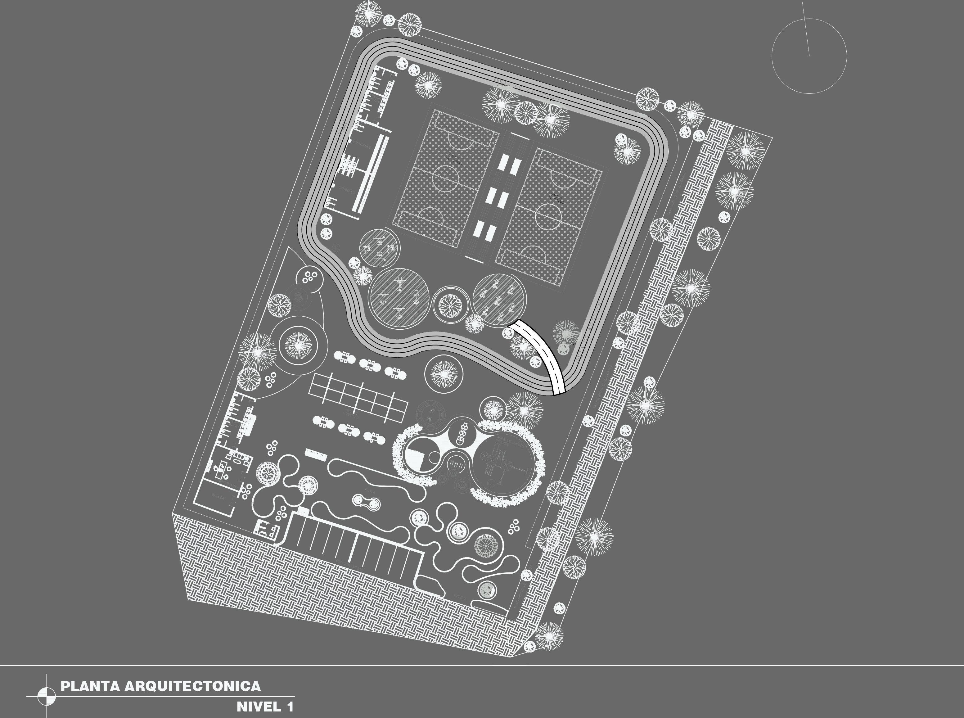 Este proyecto se destaca por la incorporación de una quebrada en el terreno, para la cual se propone darle tratamiento, iniciando con la separación que la normativa pide y la colocación de muro bajo de retención para generar seguridad en el visitante.